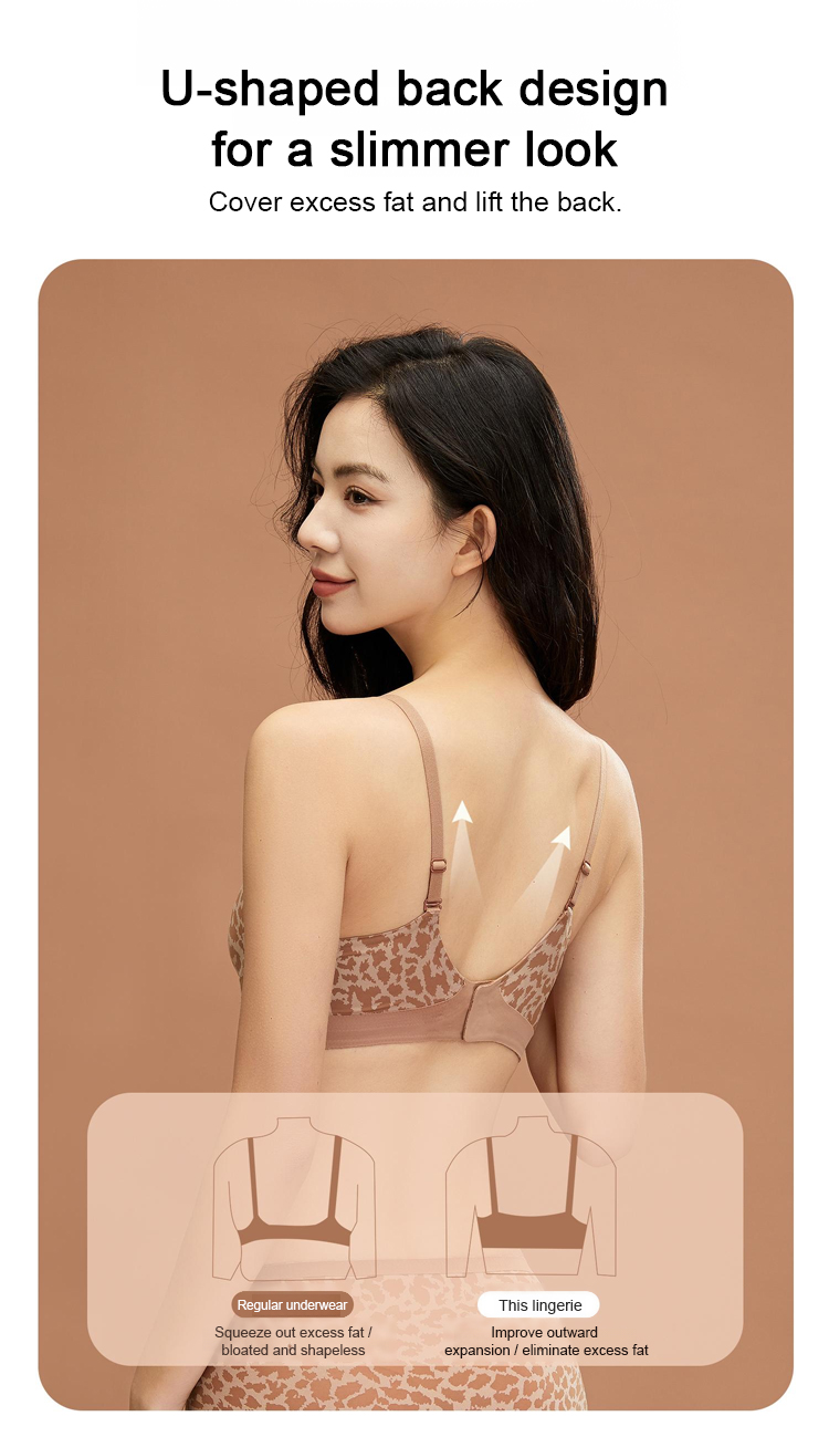 【👙 Comfortable and Pressure-Free】 Sexy Seamless Leopard Print 🐆 U-Back Bra with Side Support and Anti-Slippage Cups